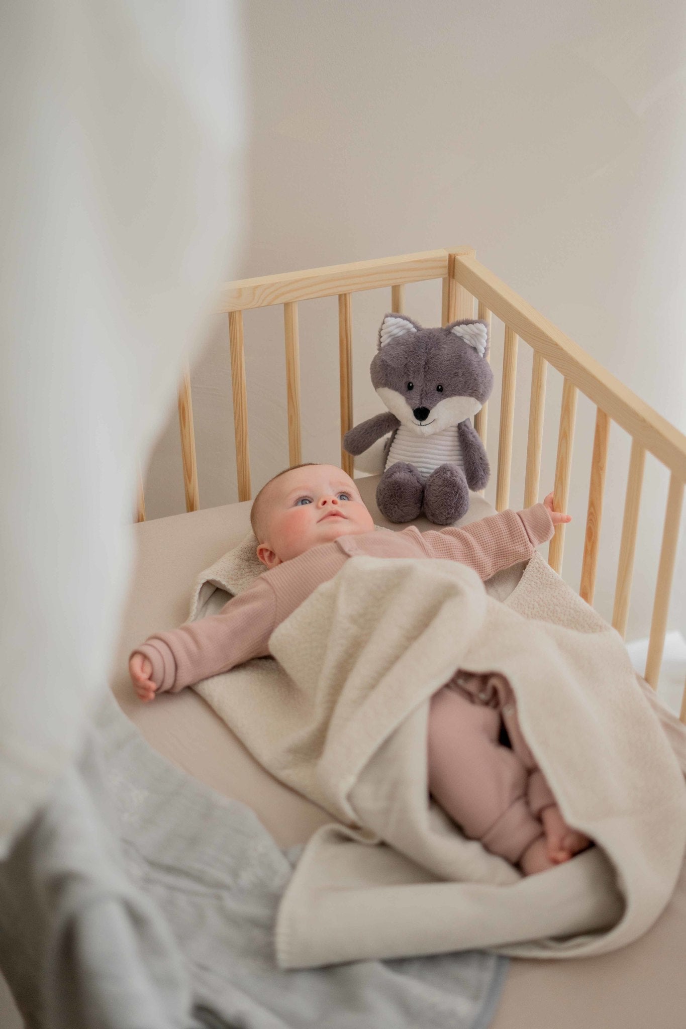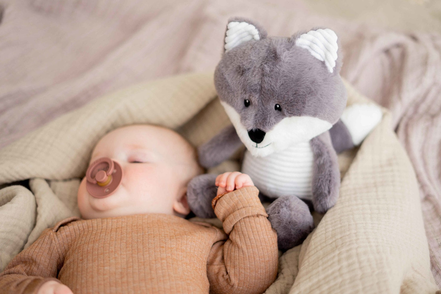 Help your baby fall asleep peacefully with our heartbeat comforters imitating a heartbeat and playing soothing melodies. Choose from a white noise, heartbeat sound or 2 different lullabies. Set your preferred time for the music box to stop playing. It will automatically start playing again at the sound of your baby’s crying. These cuddly friends will help your baby feel at ease and fall asleep quietly.